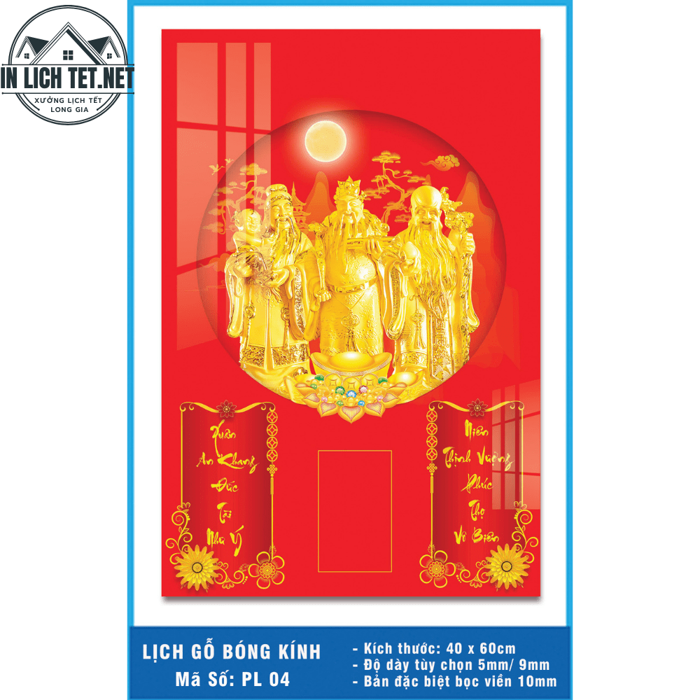 In Lịch gỗ 3D mẫu Phúc Lộc Thọ mã PL-04 KT40-60
