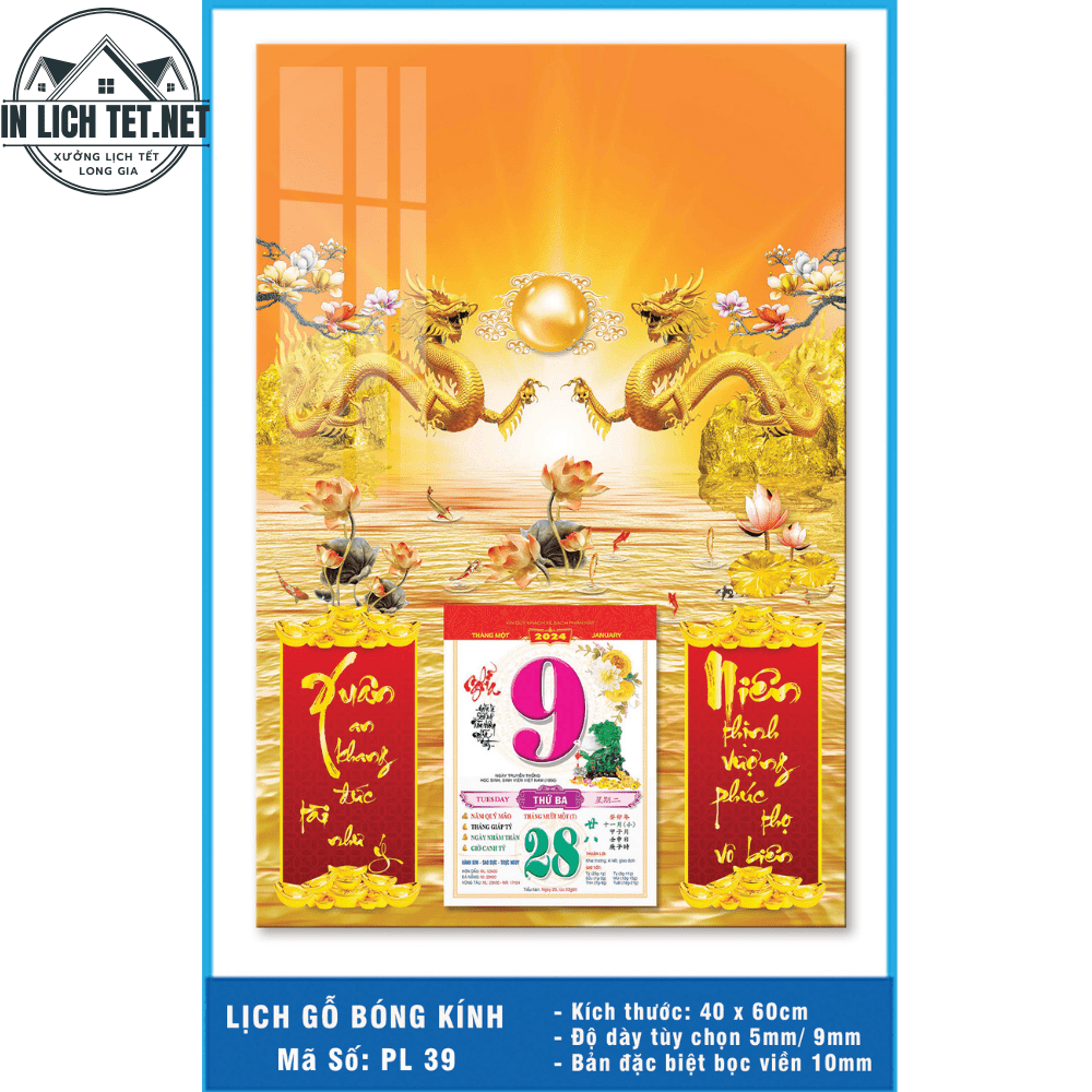 In Lịch gỗ 3D mẫu Song Long mã PL-39 KT40-60