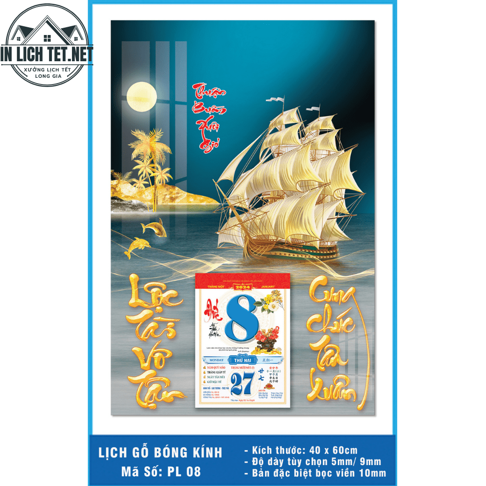 In Lịch gỗ 3D mẫu Thuận Buồm Xuôi Gió mã PL-08 KT40-60