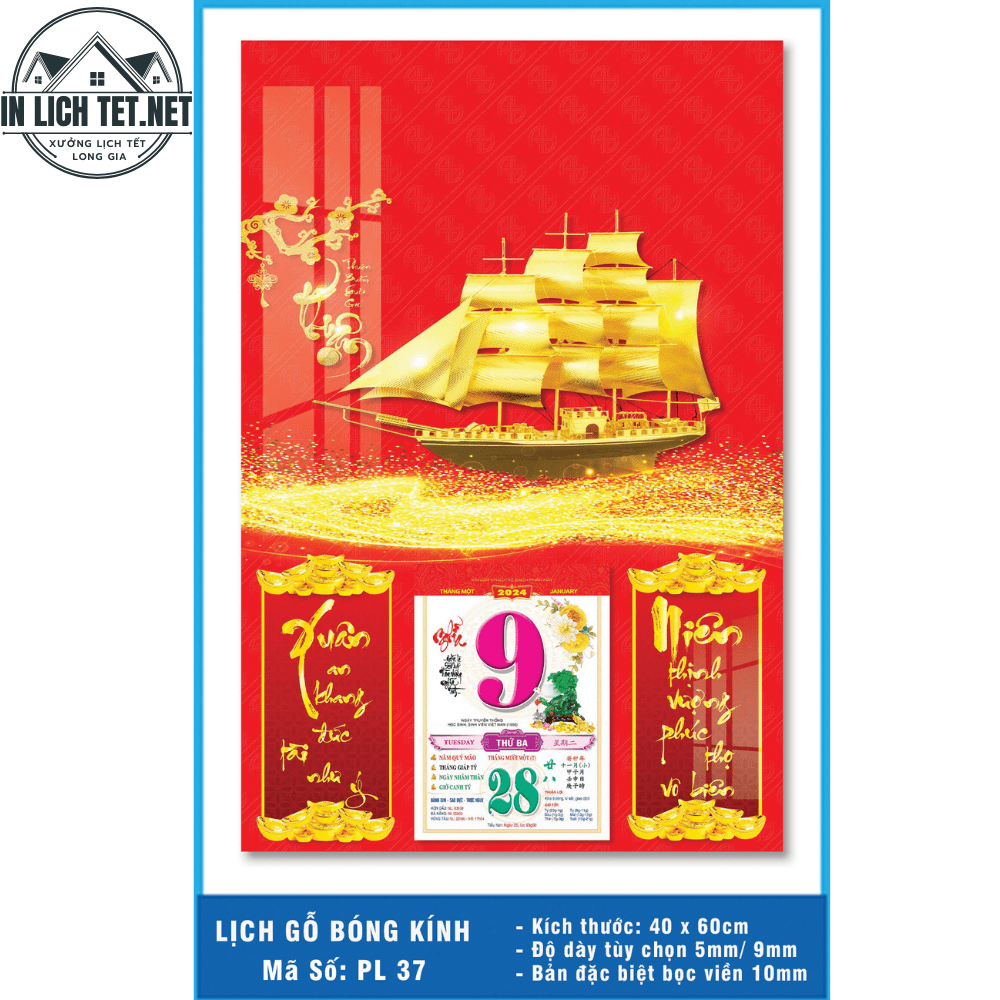 In Lịch gỗ 3D mẫu Thuận Buồm Xuôi Gió mã PL-37 KT40-60